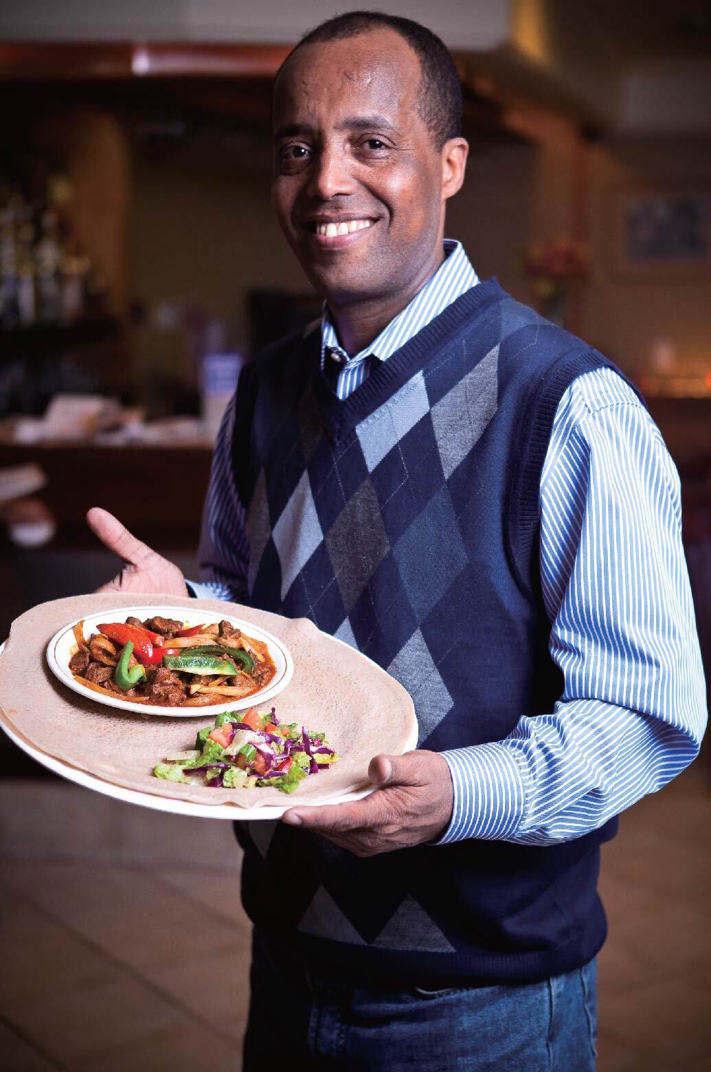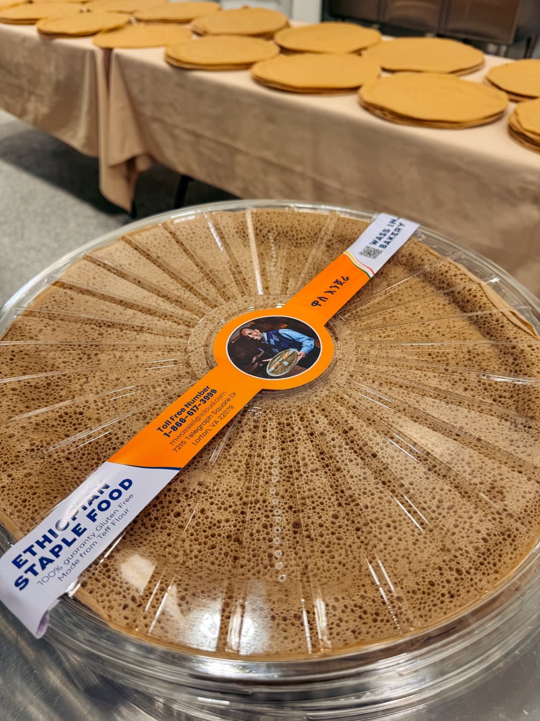 Injera is made with teff, a tiny, round grain that flourishes in the highlands of Ethiopia. While teff is very nutritious, it contains practically no gluten. This makes teff ill-suited for making raised bread, however injera still takes advantage of the special properties of yeast.